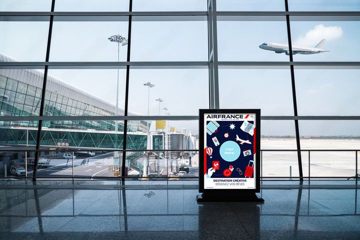 Chaque vol devient un récit, chaque destination une palette de couleurs. J’ai réinterprété le monde à travers le prisme du flat design, minimaliste et vibrant, et invité les voyageurs à créer leur propre composition digitale en aéroport. Entre interaction tactile et contemplation artistique, l’expérience transforme le voyage en manifeste sensoriel, où liberté et créativité précèdent le décollage et font du trajet une expérience esthétique à part entière.