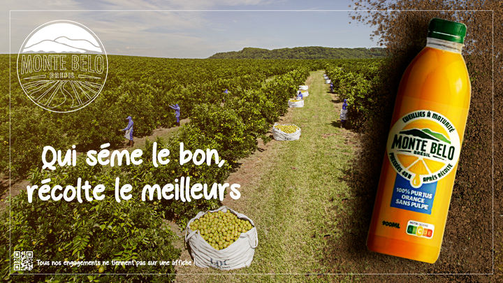 Monte Belo se positionne comme un jus premium ancré dans la naturalité, la terre et le fruit — avec un storytelling centré sur la fraîcheur vraie, le goût pur et le respect du produit.